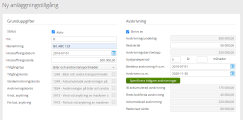 Hittills har vi hållit reda på avskrivningarna i ett separat anläggningsregister, men nu vill vi lägga till bilen som en anläggningstillgång i Bokföring & Fakturering. För att beräkningen av kommande avskrivningar ska bli korrekt måste vi specificera de tidigare avskrivningar som gjorts för anläggningstillgången.
