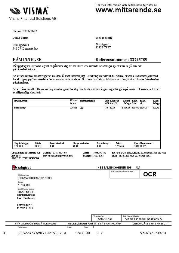 All inkasserad dröjsmålsränta betalas automatiskt ut till dig. Räntan debiteras från förfallodatumet på den utestående fakturan och betalas ut efter att betalningen inkommit. Den debiterade dröjsmålsräntan beräknas enligt räntelagen och är på 8% + referensränta.