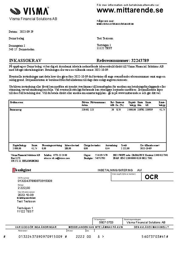 All inkasserad dröjsmålsränta betalas automatiskt ut till dig. Räntan debiteras från förfallodatumet på den utestående fakturan och betalas ut efter att betalningen inkommit. Den debiterade dröjsmålsräntan beräknas enligt räntelagen och är på 8% + referensränta.