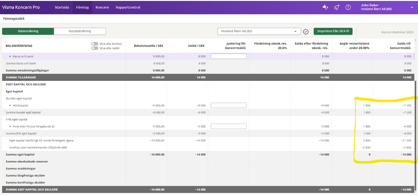 - Företagstablå 2023 - automatisk beräkning av minoritetens andel av eget kapital