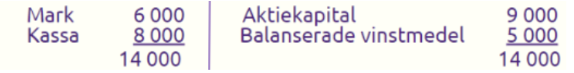 Marknadsvärdet för mark är 11 000, dvs 11 000 - 6000 ⇒ övervärde 5 000 kr. Ingen avskrivning görs på övervärdet eftersom det avser mark, dock beräknas uppskjuten skatteskuld.