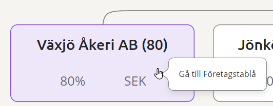 Från sidan Översikt öppnar du företagstablån för ett koncernföretag genom att klicka på företaget i koncernstrukturen.