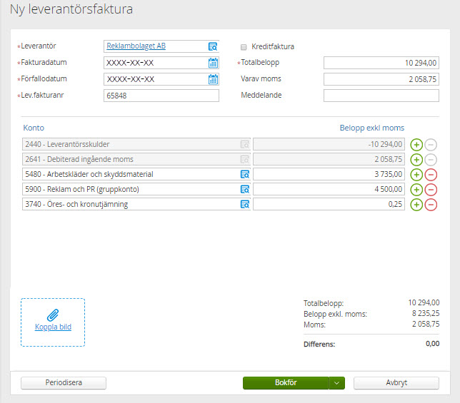 Läs mer om funktionen i avsnittet Registrera leverantörsfaktura.