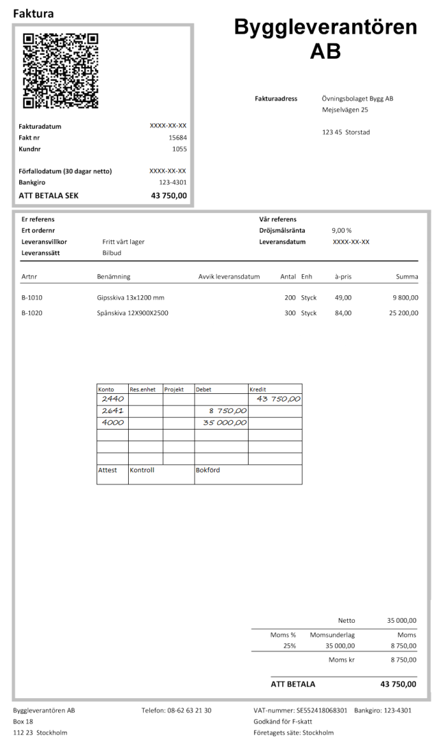 I den här övningen ska du träna på att registrera leverantörsfakturor.