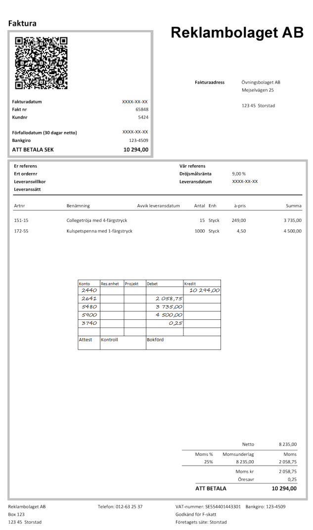 Övningarna är avsedda att användas i undervisningssyfte i påhittade företag. Vi rekommenderar inte att du övar i ditt riktiga företag.