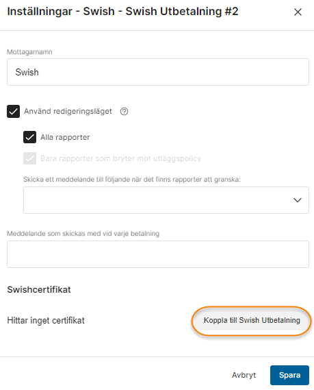 - Klicka på knappen Koppla till Swish Utbetalning.