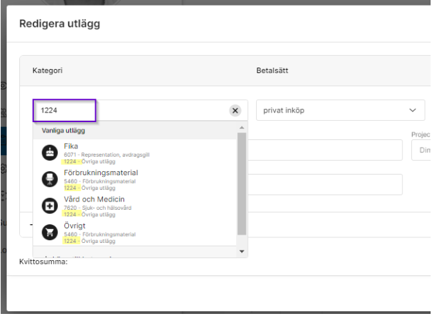 Förbättrat sök för utläggskategorier