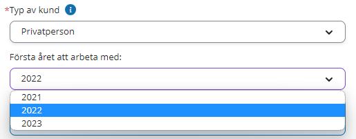 For a Private individual, select a year from First year to work with.