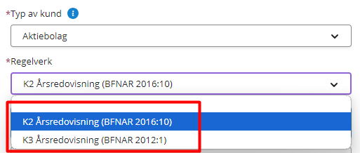 If you are not sure what regulation to select, see the page K1, K2 and K3 - choose the correct regulation for your company.