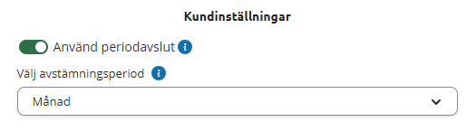 You can choose to use period closing or not by using the Use period closing toggle. With period closing enabled, you can manage your reconciliation for each month or quarter. When disabled, you do the reconciliation for an entire year. This can be changed later under Maintenance - Customer information.