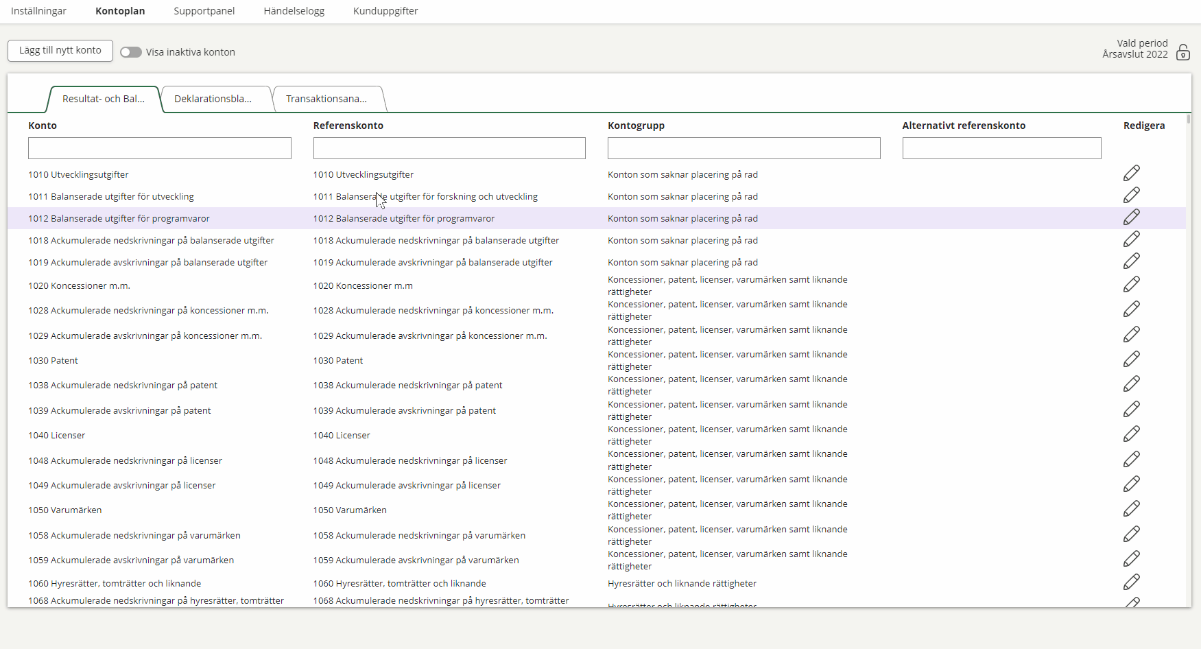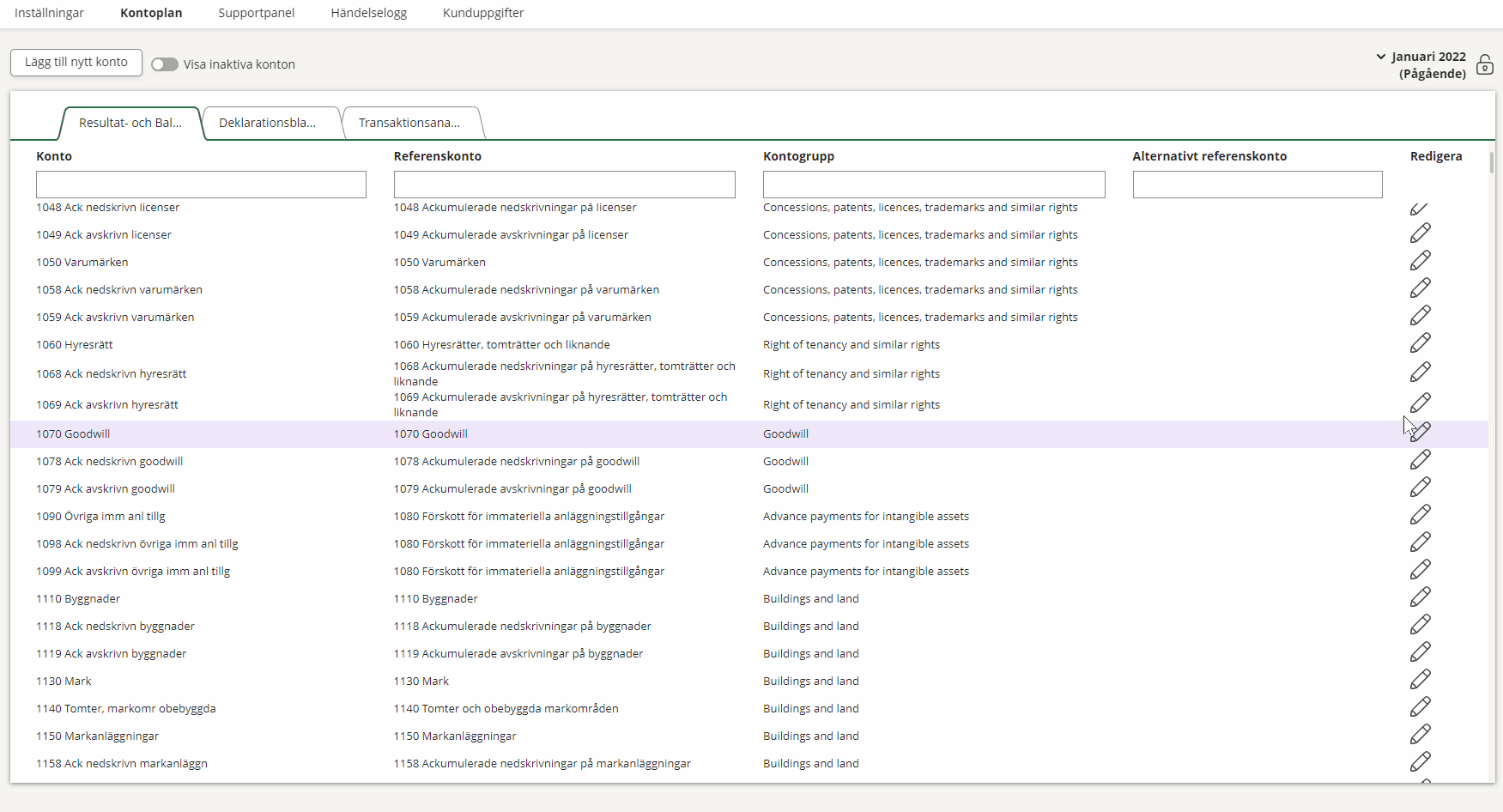 In Maintenance - Chart of accounts, you can see which accounts that have been imported into Tax & Annual accounts, and to which reference account it has been linked.