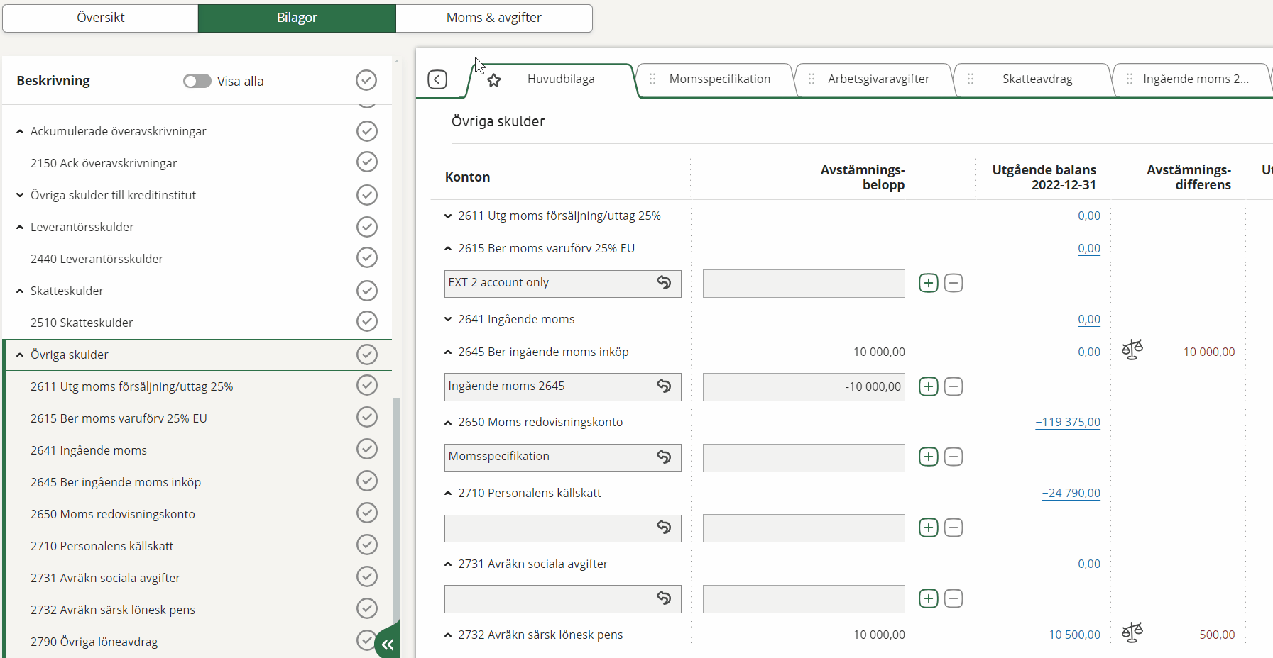 To add an external appendix to an account, select Appendices - Add appendix or click on the paper clip icon on the selected account's row in the overview.