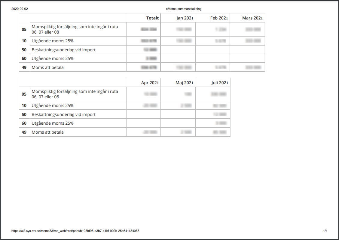 Beroende på vilken momsperiod du har valt, kommer bilagan att skapas…