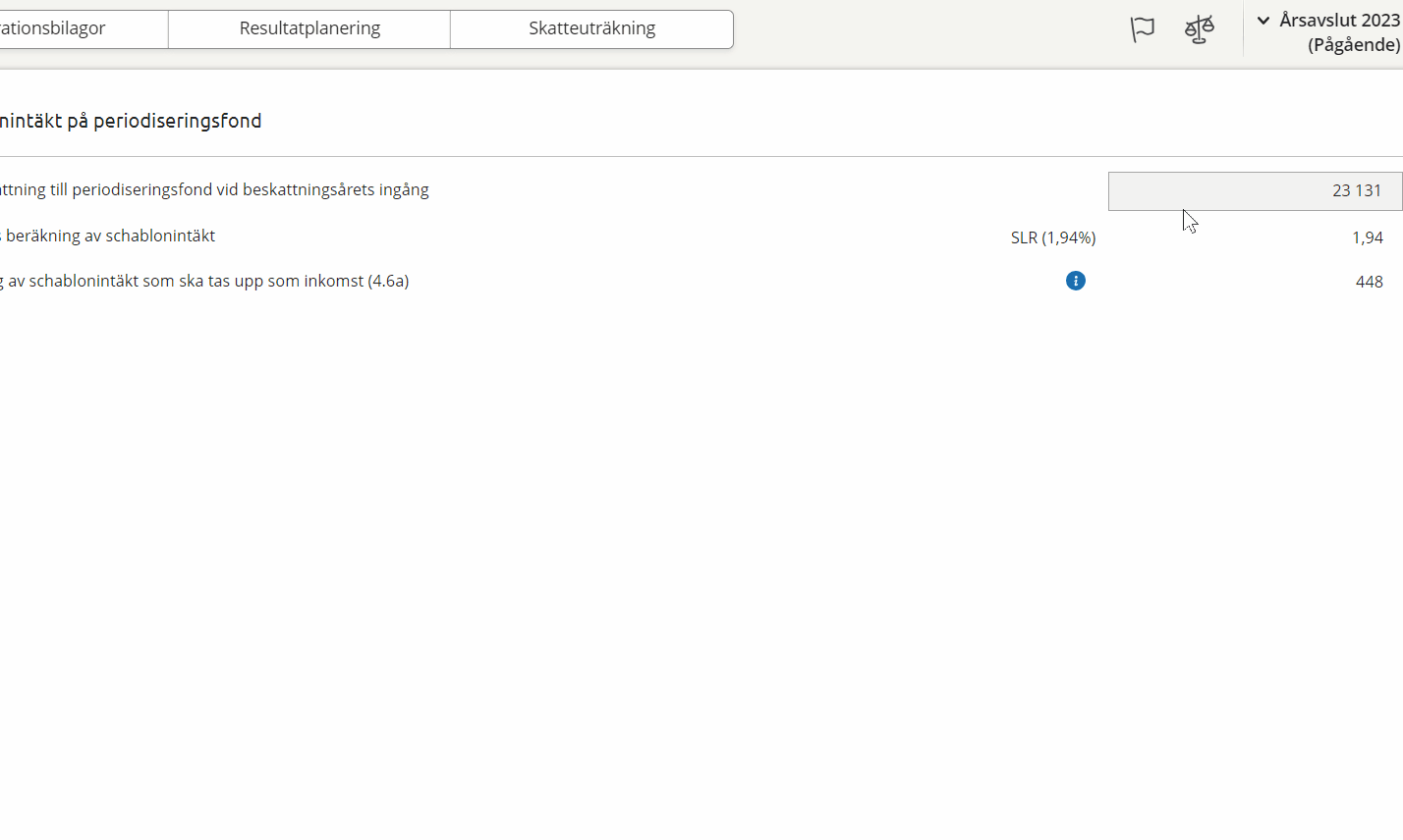- Under Resultatplanering ser du det slutliga skattemässiga resultatet efter att avsättningar till eller från periodiseringsfonder har gjorts.