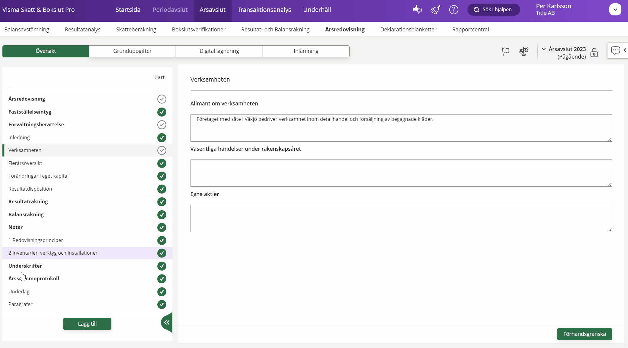 Nu kan du ändra ordningen på noterna i årsredovisningen genom att dra och släppa dem där du vill ha dem. Det funkar i alla bolagstyper som har årsredovisningar (ej årsbokslut) och för räkenskapsår som slutar 2023-09-30 eller senare.