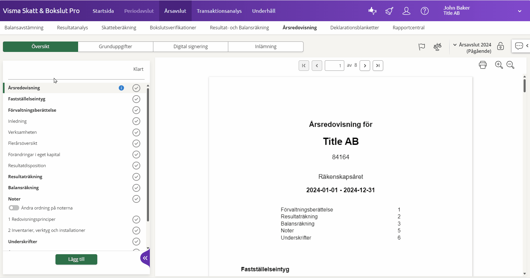 Enligt nya regler ska det på årsredovisningen finnas ett datum för när den färdigställdes, dvs när dess slutliga innehåll bestämdes och den var färdig för undertecknande. Det har vi nu sett till att få på plats! På sidan Underskrifter går det nu att fylla i Datering av årsredovisning. Detta gäller för räkenskapsår som startar 2024-07-01 eller senare.