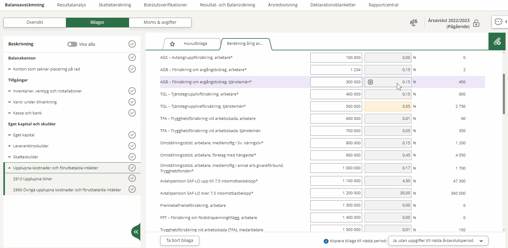 - Belopp som hämtas automatiskt från FORA-bilagan går nu att ändra manuellt.