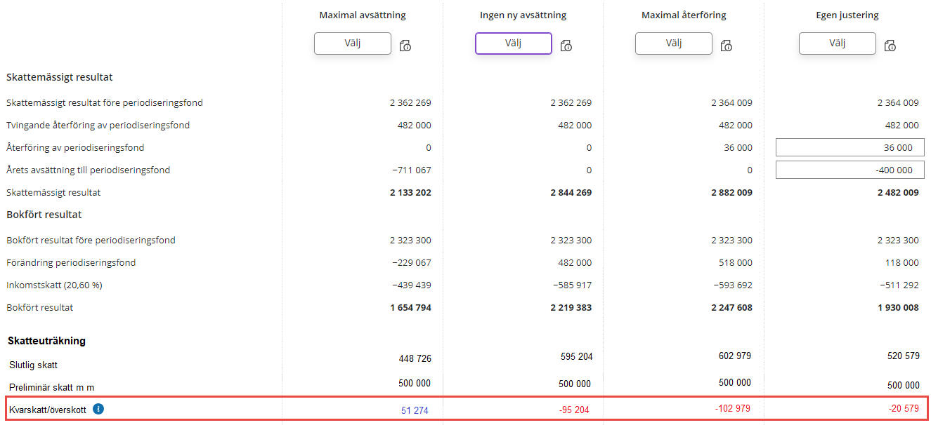Nu kan du lägga till övertagna periodiseringsfonder i det totala återförbara beloppet som beräknas i resultatplaneringen.