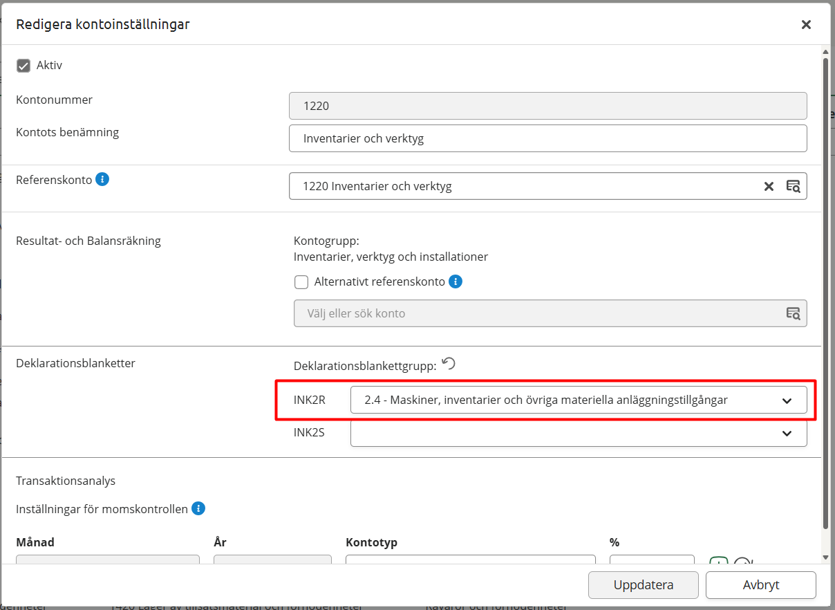 Som du säkert vet, kan du se ett kontos kopplingar till deklarationsblanketterna under Kontoplan - Kontoinställningar. Detta har vi på begäran gjort ännu bättre, så nu visas inte bara fältkoden, utan också namnet på fältet. Såå himla bra. Och tydligt!