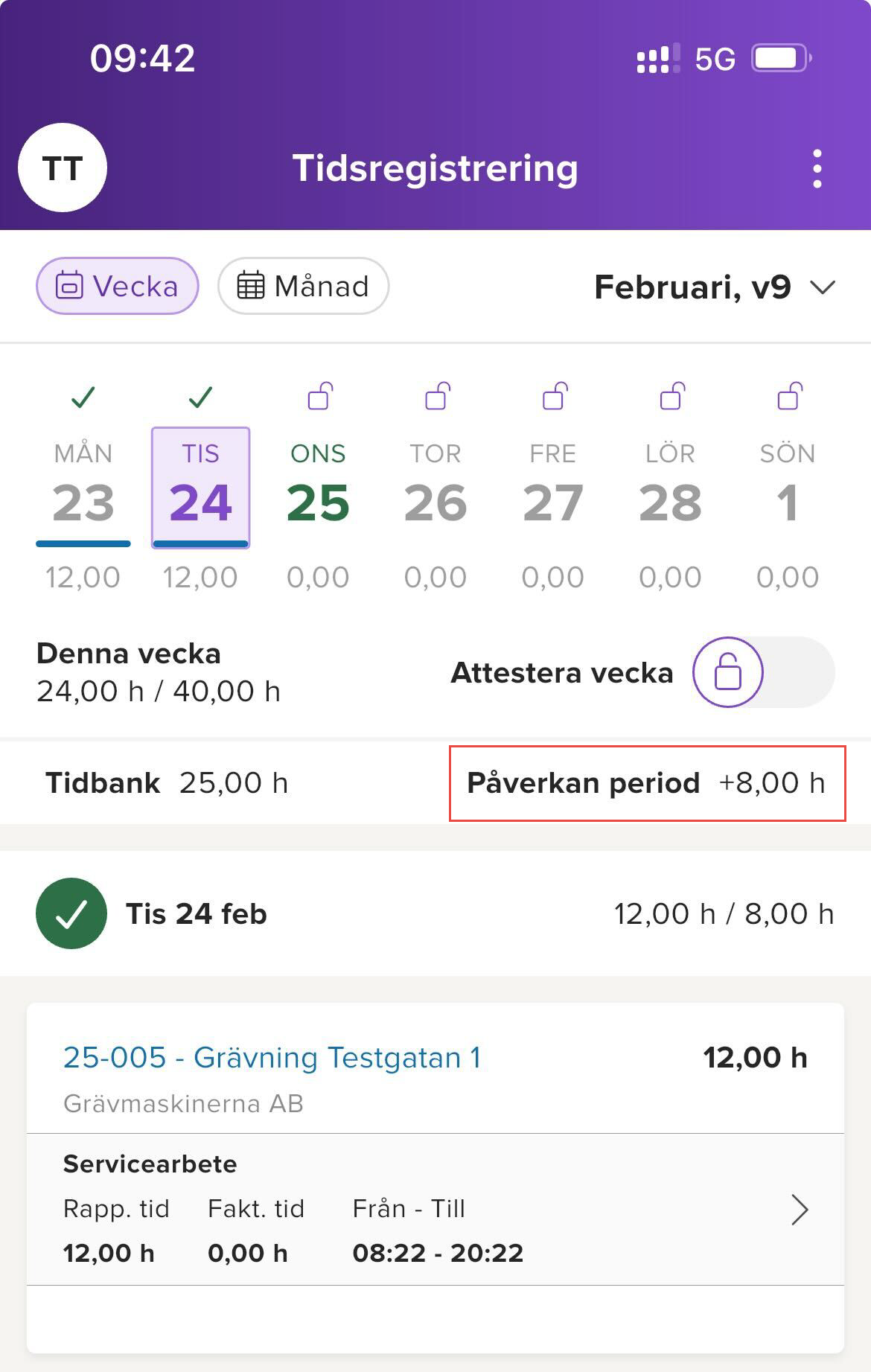 Korrigerade tidrapporter går nu att låsa