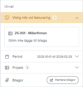 Om du jobbar med samlingsprojekt kan du nu se samlingsprojektets namn och nummer på fakturaunderlaget.