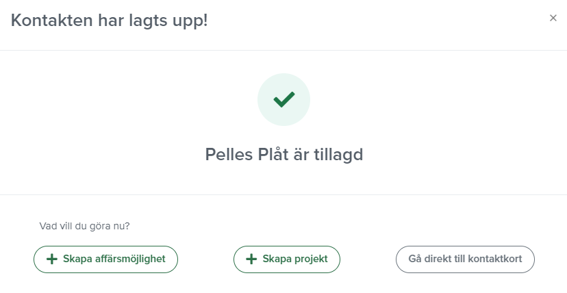 När du har skapat en ny kontakt kan du numera välja om du direkt vill