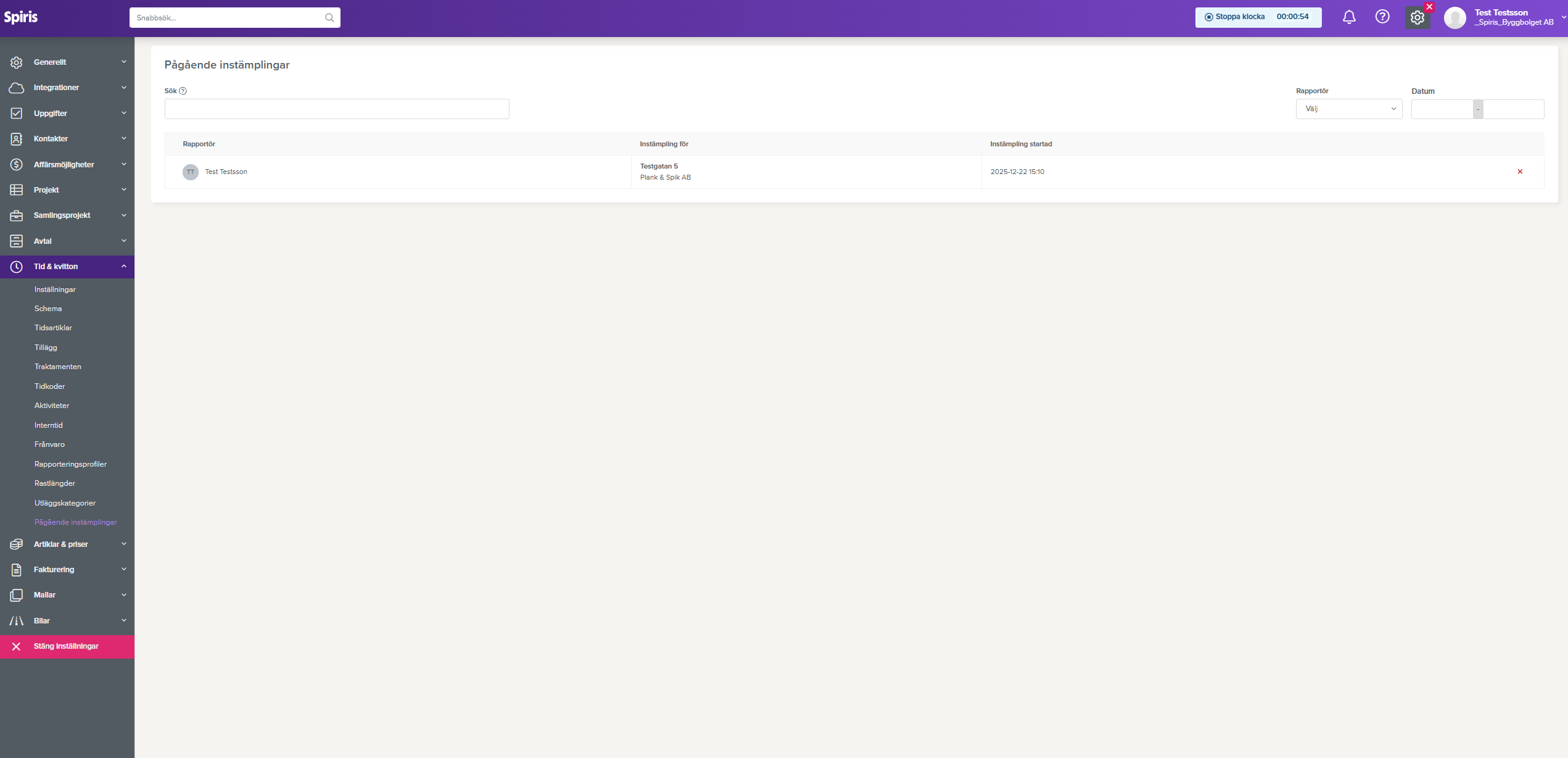 Läs mer i avsnittet Pågående instämplingar.