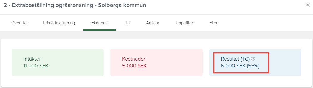 Vill du kolla upp ett projekts täckningsgrad hittar du det numera på projektet under fliken Ekonomi.