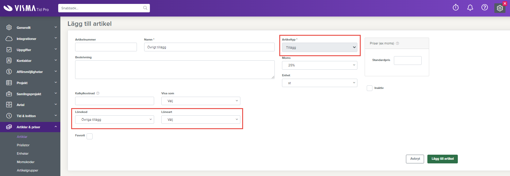 Nu kan du som har en koppling till Lön utöka löneunderlaget med övriga tillägg. I dagsläget finns det ett antal statiska tillägg i Tid & Projektplanering, men nu kan du alltså skapa egna tillägg som du kopplar till lönekoden Övriga tillägg och anger en korrekt löneart. Läs mer i avsnittet Tillägg.