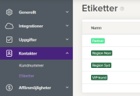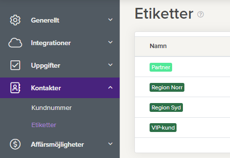 Under till exempel Inställningar - Kontakter och Inställningar - Projekt kan du skapa etiketter. Dessa kan du sedan använda för att smidigt söka och göra urval.