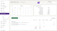 Från menyn Tid & kvitton - Tidsregistrering registrerar användaren sin tid per Dag, Vecka eller Månad. Programmet kommer ihåg den vy som användes senast. Beroende på vilken licens användaren har kan tiden registreras på projekt, interntid eller frånvaro.
