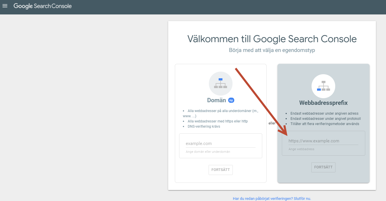 Denna hjälpen förklarar hur du konfigurerar Google Search Console. Notera att texter och bilder kan skilja sig något från deras websida.